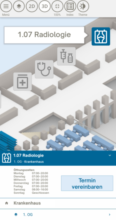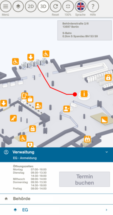 Das System ist mobil auf dem Smartphone oder vor Ort am Infoterminal verfügbar und bietet somit Orientierung, wo und wann sie gebraucht wird.